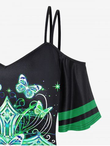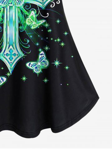 L*****e5Gothic St Patrick's Day Butterfly Cross Print Cold Shoulder TopColor: BLACK Size: L | US 12Absolutely love this shirt! the colors, the length, the softness. It fits amazingly, and the cold shoulder gives me the feeling of wearing a tank top, but with a partial sleeve. I love this shirt so much!