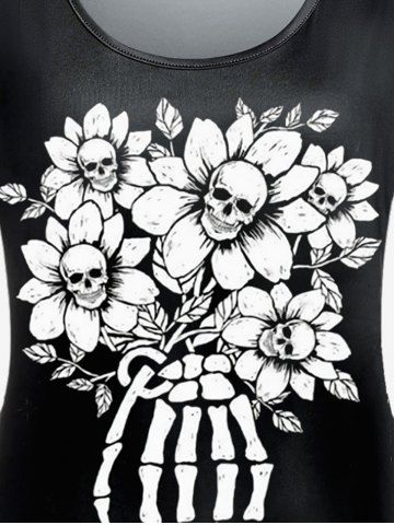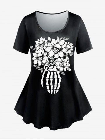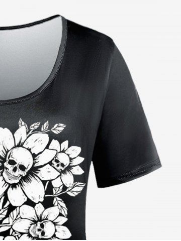 Gothic Sunflower Skulls Skeleton Printed Short Sleeves Tee - Black - 4x | Us 26-28