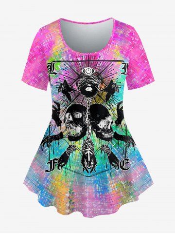 T-shirts > Gothic Tie Dye Skulls Hands Eyes Print T-shirt