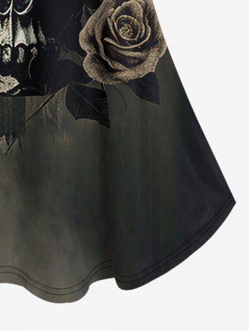 Gothic Vintage Skull Rose Butterfly Print Cold Shoulder T-shirt - Black - M | Us 10