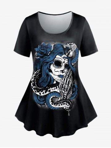 F*****a5Gothic Witch Rose Print T-shirt And Plus Size Plaid Zipper Mini A Line Skirt Gothic OutfitColor: BLUEI love this outfit