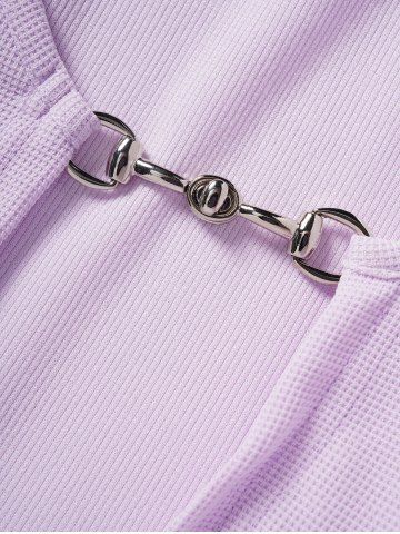 Plus Size Colorblock Ruched Chain Embellishment Textured Overlay Faux Twinset T Shirt - Light Purple - L