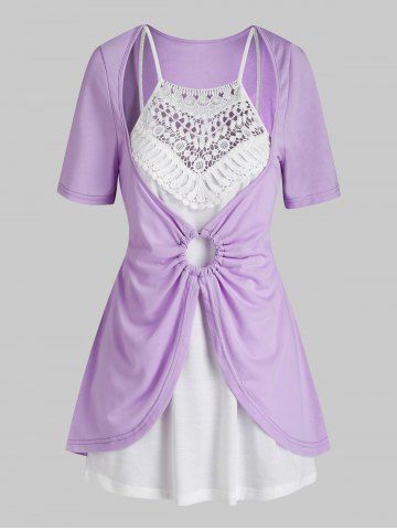T-Shirts > Plus Size Crochet Tank Top and O Ring Tee