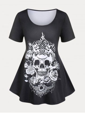 R*****r5Plus Size & Curve Skull Print Gothic T-shirtColor: BLACK Size: 4X | US 26-28Very comfortable, love the cut at the bottom and is true to size