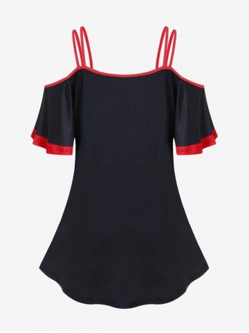 Plus Size Gothic Skulls Printed Two Tone Cold Shoulder Tee - Black - 5x | Us 30-32