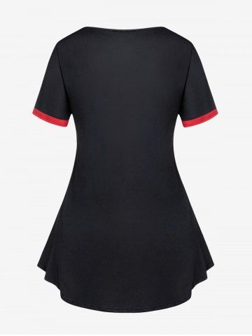 Rose Skulls Printed Colorblock Gothic Tee - Black - 4x | Us 26-28