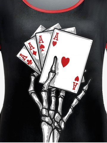 a*****r5Plus Size Skeleton Playing Card Printed Gothic Short Sleeves TeeColor: BLACK Size: 4X | US 26-28love it! fits great!