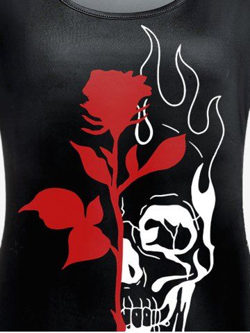 Plus Size Skull Flower Printed Gothic Short Sleeves Tee - Black - L | Us 12