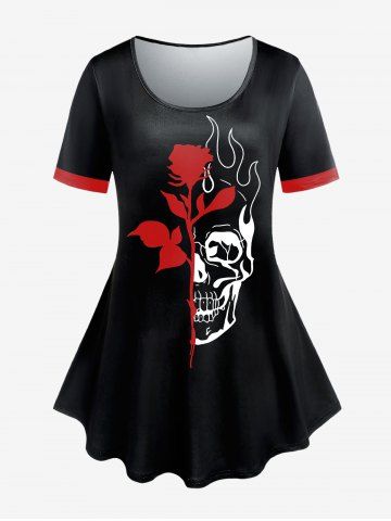 Plus Size Skull Flower Printed Gothic Short Sleeves Tee - Black - 1x | Us 14-16