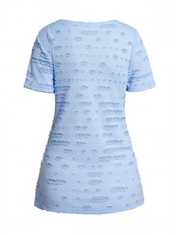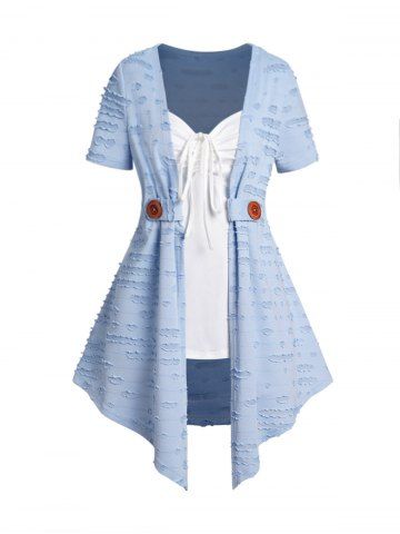 Ripped Colorblock Cinched Faux Twinset T-shirt - Light Blue - L