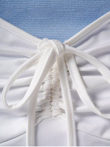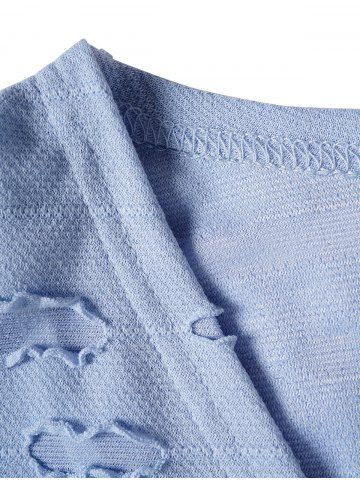 Ripped Colorblock Cinched Faux Twinset T-shirt - Light Blue - Xl