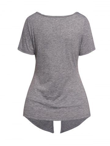 Short Sleeve Dual Buttons Pointed Hem Top And Crossover Tank Top Set - Dark Gray - Xl