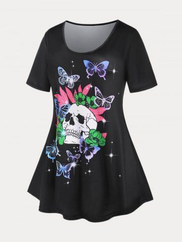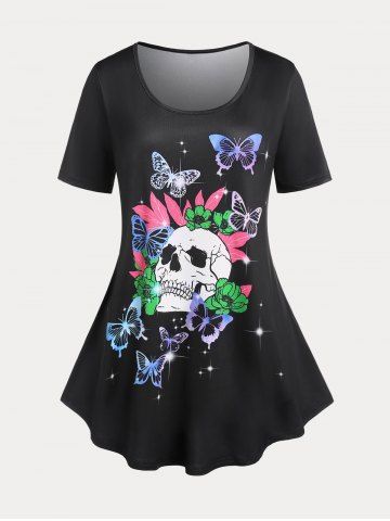 h*****84Skull Butterfly Print Plus Size & Curve Gothic T-shirtColor: BLACK Size: 2X | US 18-20super cute! thinner material perfect for summer! very pleased with it! probably could have gone a size smaller! love it though!