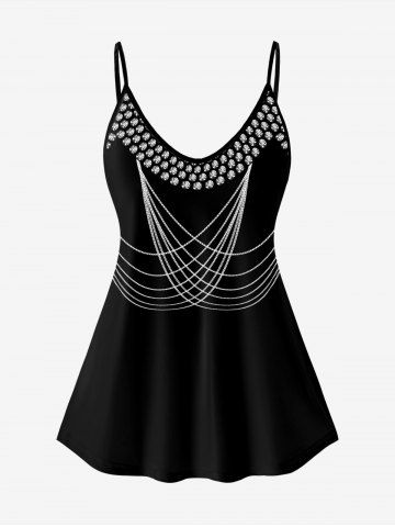 Gothic 3D Chain Rivets Print Cami Top (Adjustable Straps) - Black - M | Us 10