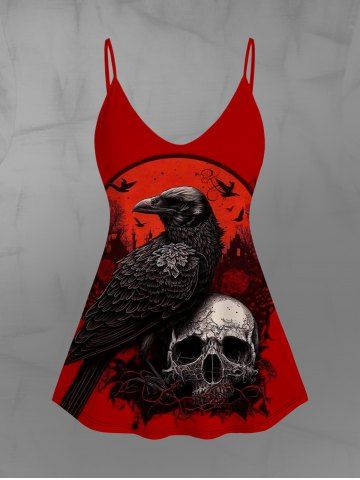 Gothic Cami Bird Skull Print Top (Adjustable Shoulder Strap) - Red - M | Us 10