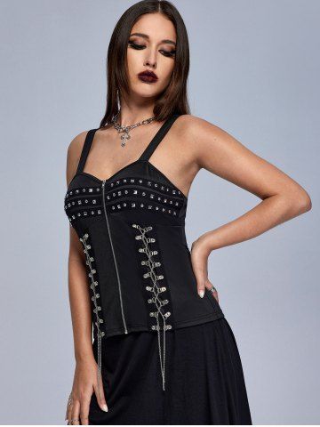 a*****a5Gothic Punk Chain Lace-up Rivets Zip Front Tank TopColor: BLACK Size: 2X | US 18-20This is just too cute and fits me just perfectly. My 1st time ordering from here and I am going to tell my friends about this site. I just like the clothes very good quality