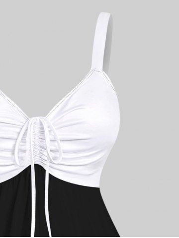 Gothic Floral Lace Panel Print Cinched Tank Top - White - S