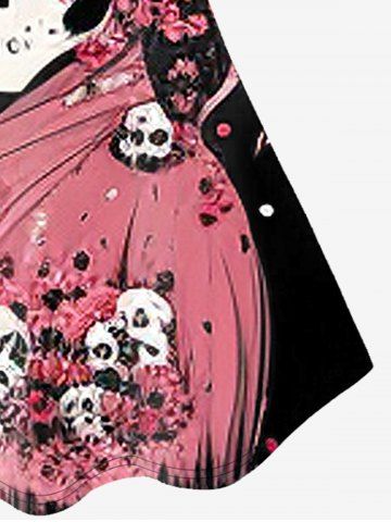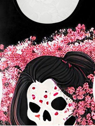 Gothic Floral Skull Print Lace Panel Tank Top - Black - 5x | Us 30-32
