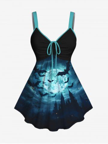 Gothic Halloween Bat Moon Castle Galaxy Print Cinched Tank Top - Black - L