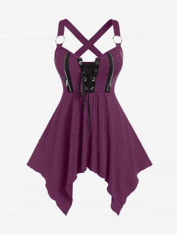 Plus Size Lace Up Zipper Crisscross Handkerchief Tank Top - Light Purple - 3x | Us 22-24