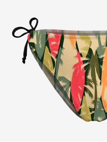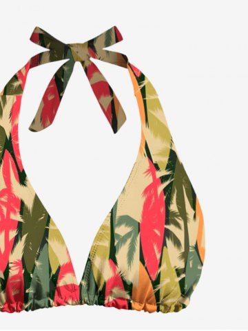 Colorful Coconut Tree Colorblock Print Hawaii Plunging Halter Backless Bikini Set - Multi-a - M