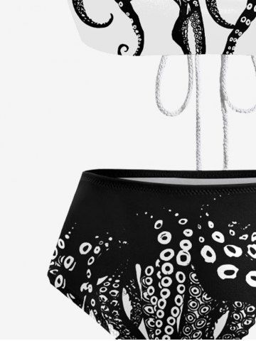 Fashion Octopus Two Tone Print Hawaii Hollow Out Backless Tankini Swimsuit - Black - S