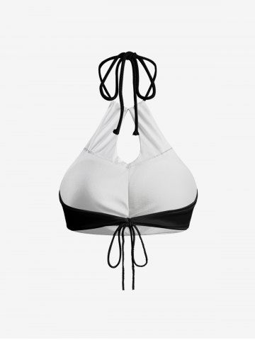 Fashion Solid Hollow Out Halter Backless Tankini Swimsuit - Black - Xs