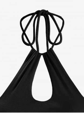 Fashion Solid Hollow Out Halter Backless Tankini Swimsuit - Black - Xl