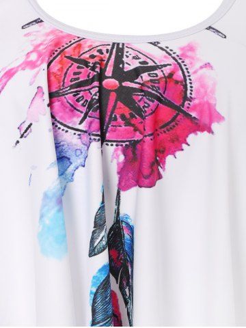 Feather Strappy Flounce Overlay Ruched High Waisted Tankini Swimwear - White - S
