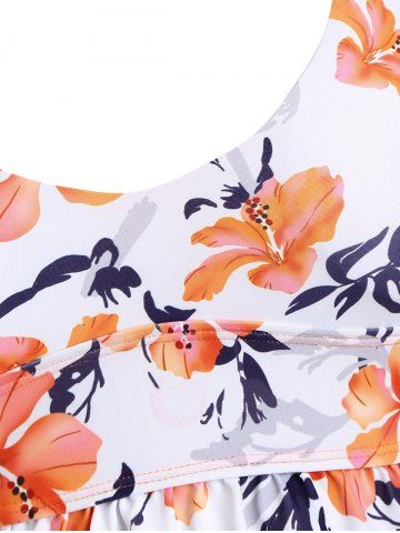 Floral Ruffled Ruched Tankini Swimwear - Orange - L