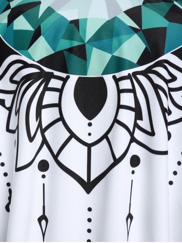 Flounce Rhinestone Print Criss Cross Tankini Swimwear - Light Green - Xxxl