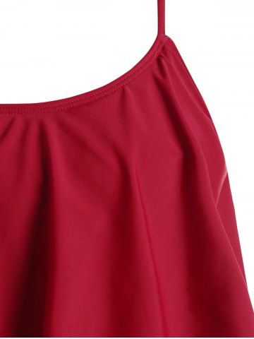 Flower Polka Dot Mix and Match Tankini Swimwear - Deep Red - Xl