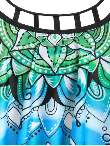 Flower Print Ruched Cut Out Padded Tankini Set - Green - Xxl