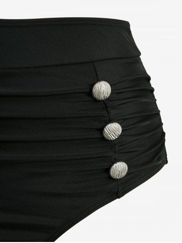 Tankinis > Lace Up Bowknot Tie Ruched Buttons Bottom Tankini Swimsuit