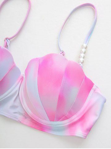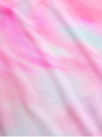 Ombre Tie Dye Print Shell Cup Chains Strap Tankini Top And Tie Asymmetrical Skirted 3 Piece Tankini Swimsuit - Light Pink - Xl