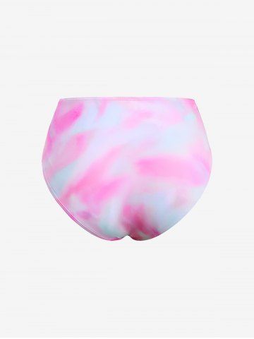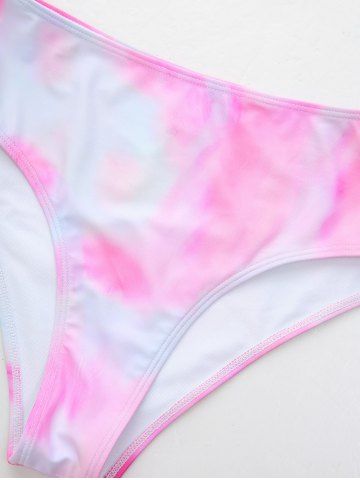 Ombre Tie Dye Print Shell Cup Chains Strap Tankini Top And Tie Asymmetrical Skirted 3 Piece Tankini Swimsuit - Light Pink - Xxxl