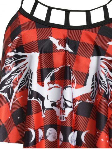 Tankinis > Plaid Bat Print Flounce Tankini Swimwear