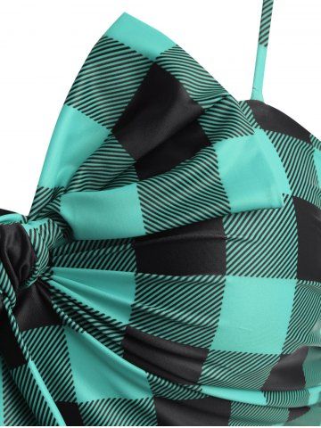 Plaid Bowknot High Rise Tankini Swimwear - Medium Turquoise - L