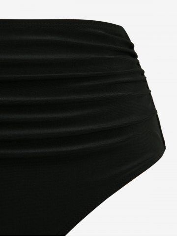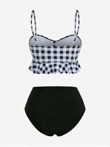 Plaid Print Bowknot Peplum Hem Ruched Tankini Swimsuit (Adjustable Shoulder Strap) - Black - L