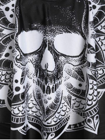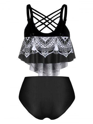 Skull Flower Print Criss-cross Padded Tankini Set - Black - S