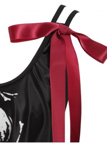 Tankinis > Skull Print Bowknot Padded Tankini Set