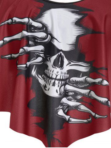 Skull Print Cinched Strappy Tankini Set - Black - Xl