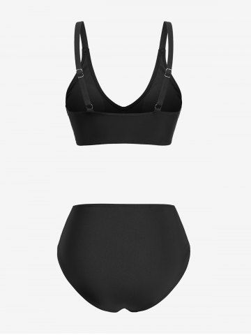 Skull Star Flocking Cinched Crossover Backless Three Piece Bikini Set - Black - M
