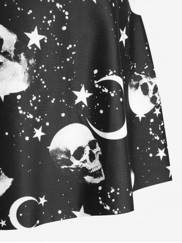 Skull Star Moon Print Cinched Bowknot Tied Tankini Swimsuit - Black - Xl