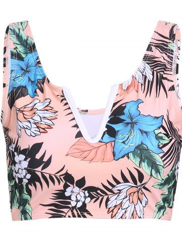 Tropical Beach Cut Out Leaf Floral Print Self Belted Tankini Swimwear - Light Pink - Xxxl