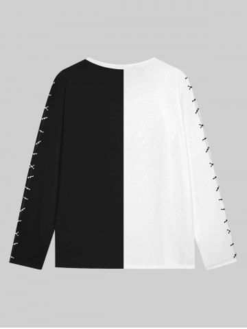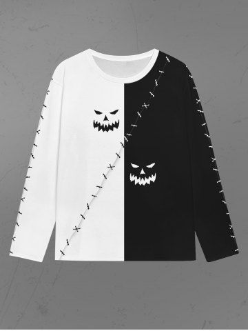 Gothic 3D Ghost Face Topstitching Two Tone Print Halloween T-shirt For Men - Black - L