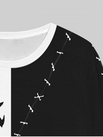 Gothic 3D Ghost Face Topstitching Two Tone Print Halloween T-shirt For Men - Black - 4xl