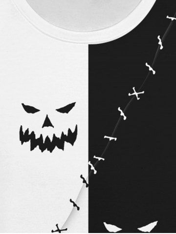 Tops > Gothic 3D Ghost Face Topstitching Two Tone Print Halloween T-shirt For Men