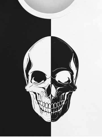 Tops > Gothic 3D Skull Print Two Tone Pullover Halloween T-shirt For Men