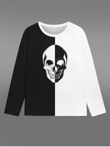 Gothic 3D Skull Print Two Tone Pullover Halloween T-shirt For Men - Black - 3xl